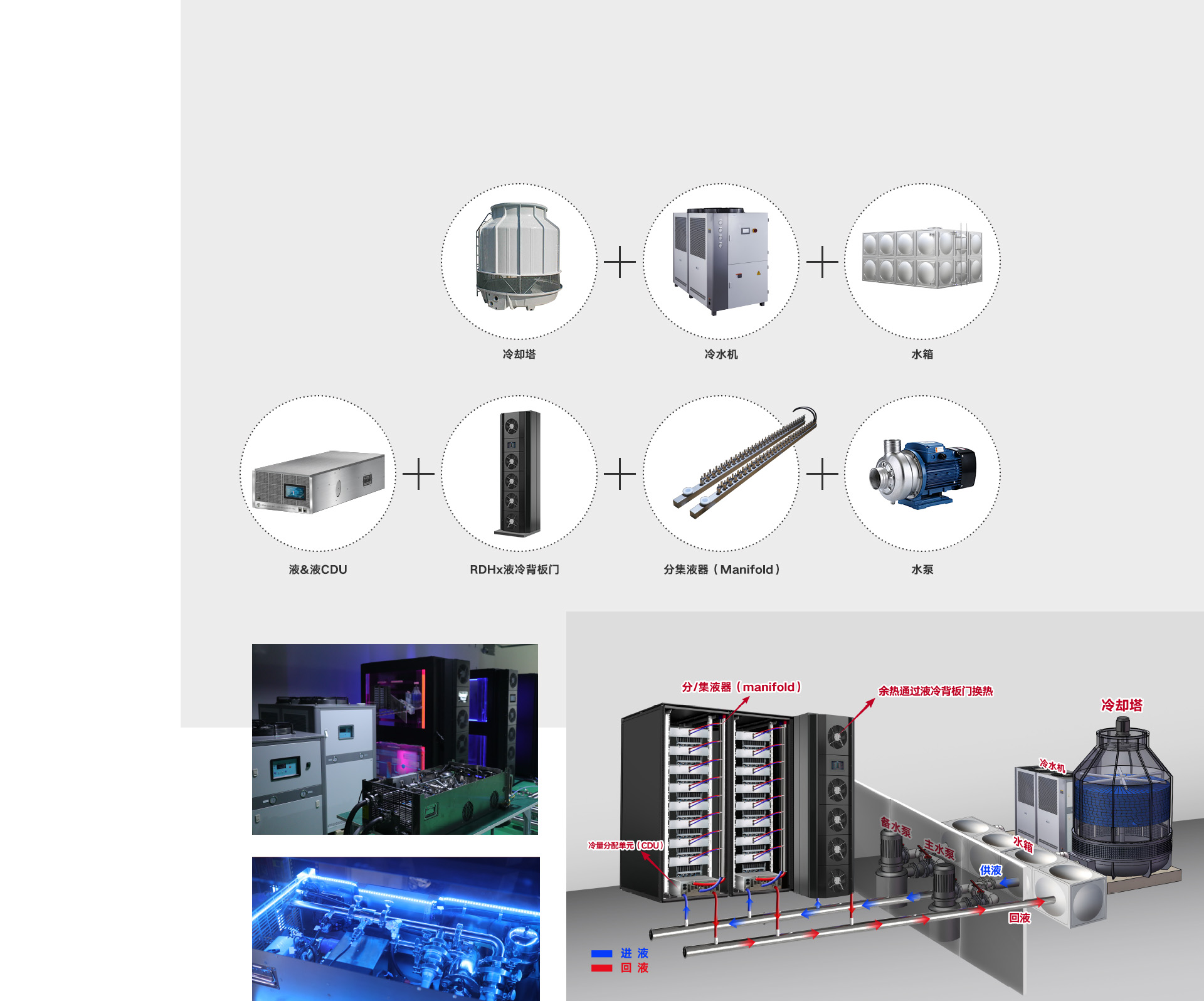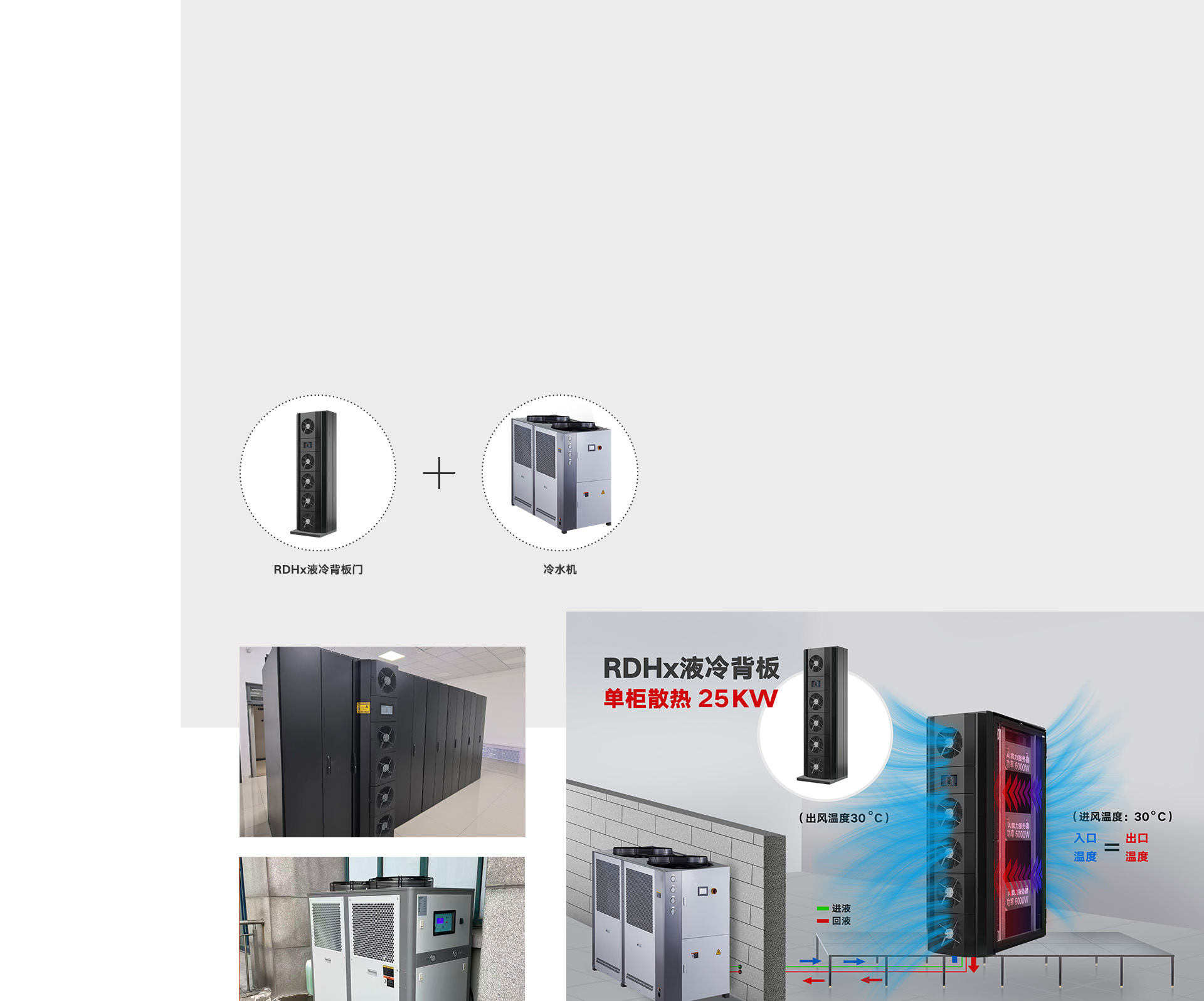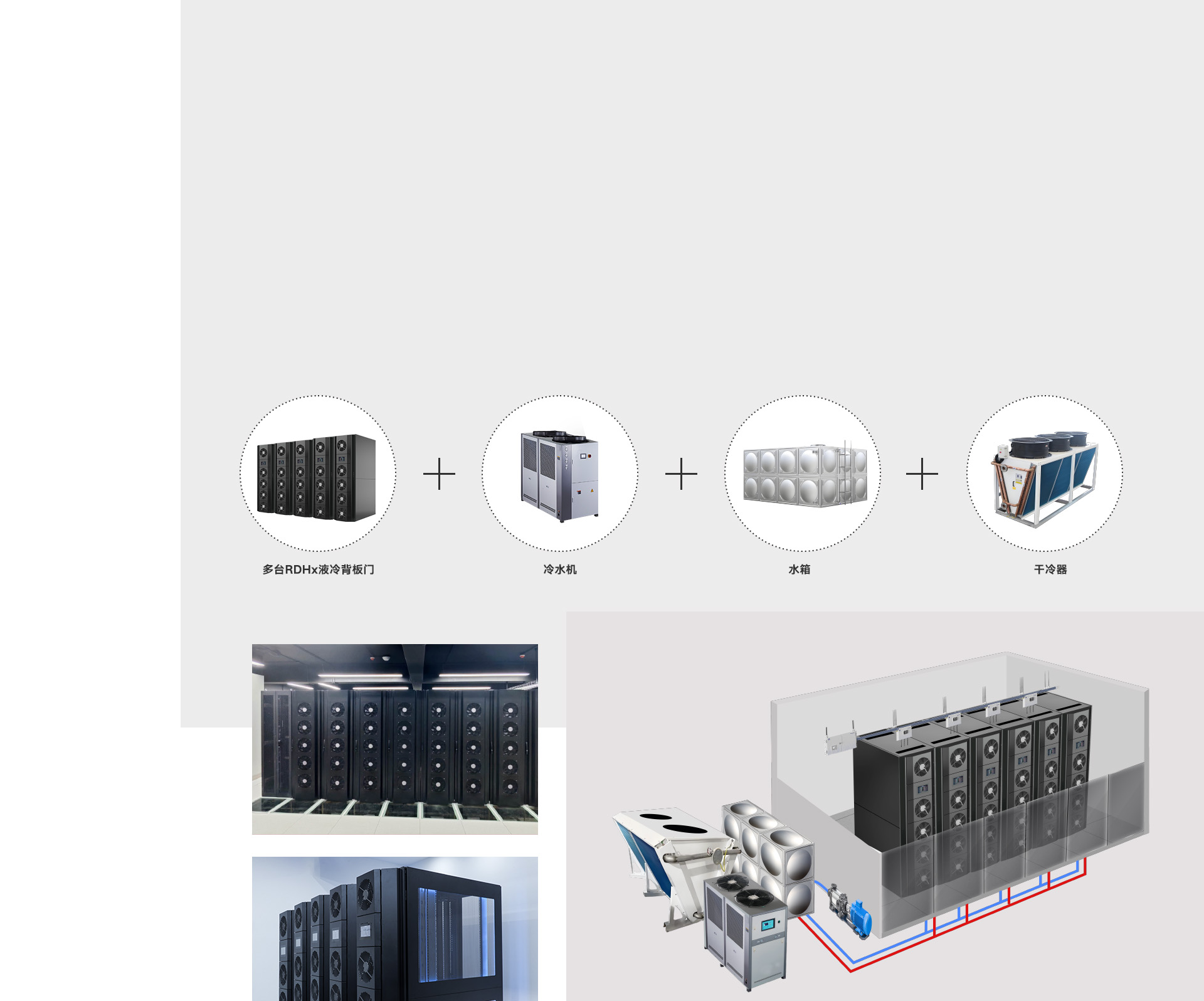 This solution installs a liquid-cooled backplane on the back of the server cabinet and uses an independent chiller for heat dissipation. The coolant circulates between the backplane door and the chiller to take away the heat of the server, achieving efficient heat dissipation. Each cabinet is cooled independently and can be configured flexibly, making it suitable for high-load data center environments. The system is easy to install and maintain, ensuring the stable operation of the server.